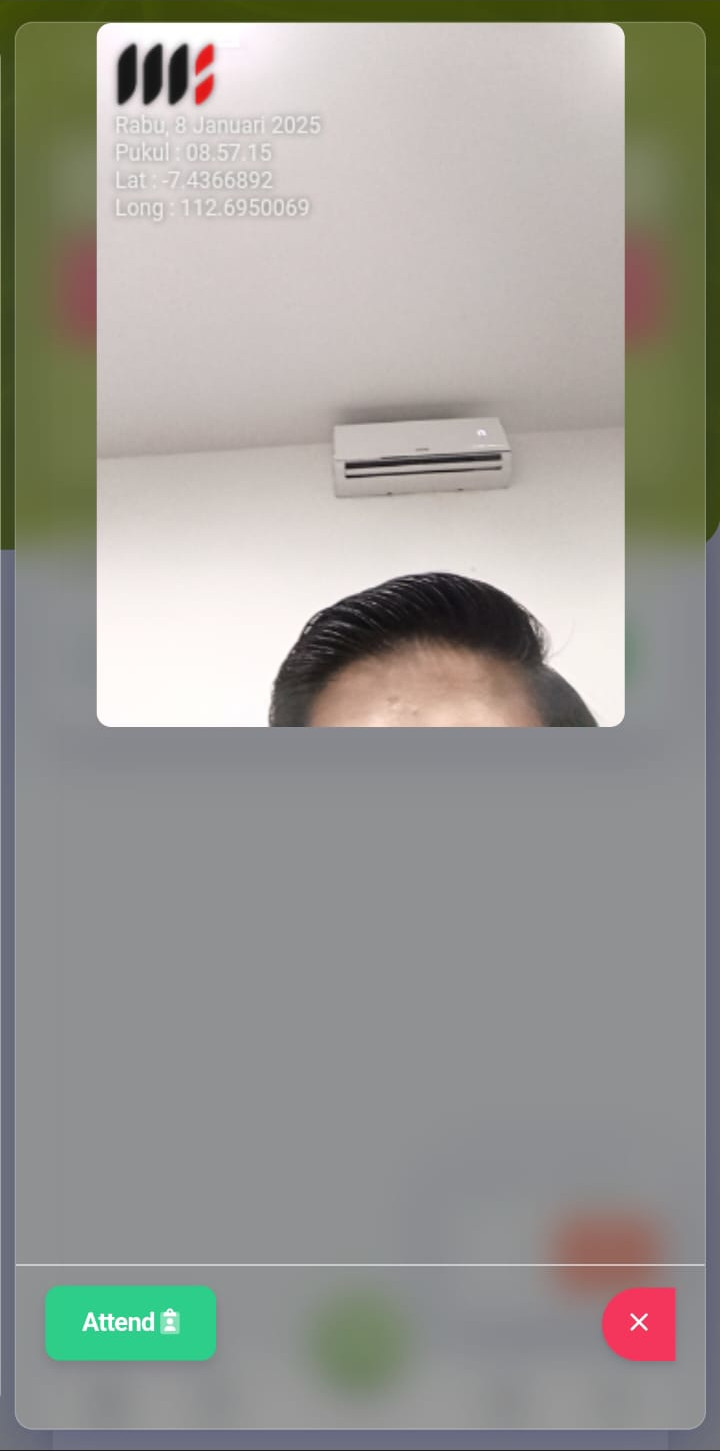 - Tap tombol "Attend" (hijau) untuk mengirim absensi.